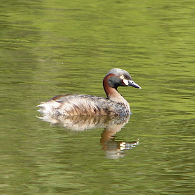 Australasian Grebe Tachybaptus novaehollandiae. Thanks to Birds in Backyards, I have learnt from this link, that Grebes eat their own feathers and feed them to their young to prevent injury when swallowing fish bones.